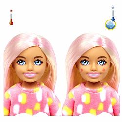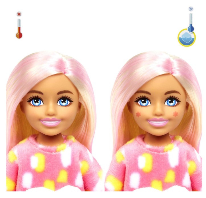 With the Barbie Cutie Reveal Chelsea dolls from the Jungle series, unpacking becomes an experience with no fewer than 7 surprises! Meet a charming baby elephant, a sweet tiger cub, a cheerful little toucan or a cheeky baby monkey - take off the animal suit to reveal a posable Chelsea doll. Which doll do you have? Each little doll has shiny glitter on her face that makes her an even cuter cutie. Make it crazy and open the other surprises too! How about a skirt and a mini animal to match the doll's animal suit? Turn the plush top inside out and you have an oversized jacket; turn the head and an animal bed will appear. Using ice cold and warm water you can change the colors of the doll and mini animal for even more fun! Kids will love discovering all the surprises in this jungle-themed Barbie Cutie Reveal series.