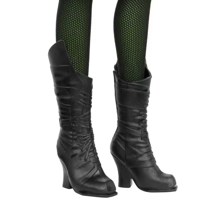 Inspired by Universal Pictures' Wicked, Elphaba doll wears her removable school uniform, like her button up cardigan, asymmetrical skirt, leggings, and boots.