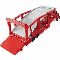 - Open the back of the car carrier to create a ramp that can be used to roll cars directly onto the first deck or race off into action!