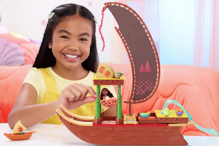 Inspired by Disney’s Moana 2, the theatrical sequel, kids can imagine exploring beyond Motunui with Moana's Adventure Canoe playset complete with Moana small doll and her friend, Heihei, the chicken.