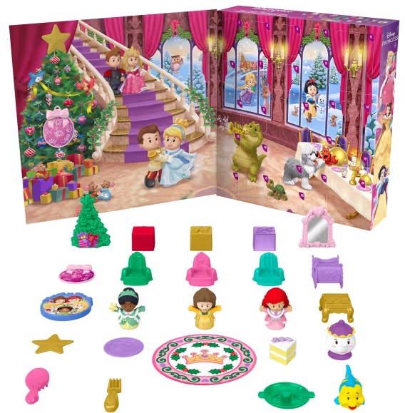Little People advent calendar and playset featuring Disney Princess figures and accessories for enchanting toddler-friendly holiday pretend play