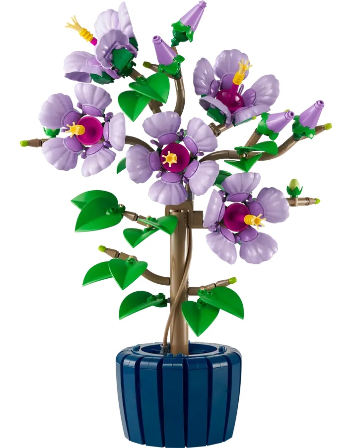 Enjoy building the LEGO plant, which features 5 large blooms, 4 flowers that are about to blossom and 2 young flower buds, before discovering the details. Capturing the gentle beauty of nature, the large blooms have lavender-colored petals and yellow stamens, while the leaves are pale green. Once you’ve finished building the hibiscus, you can move the petals and position the leaves to add a touch of customization to your creation.