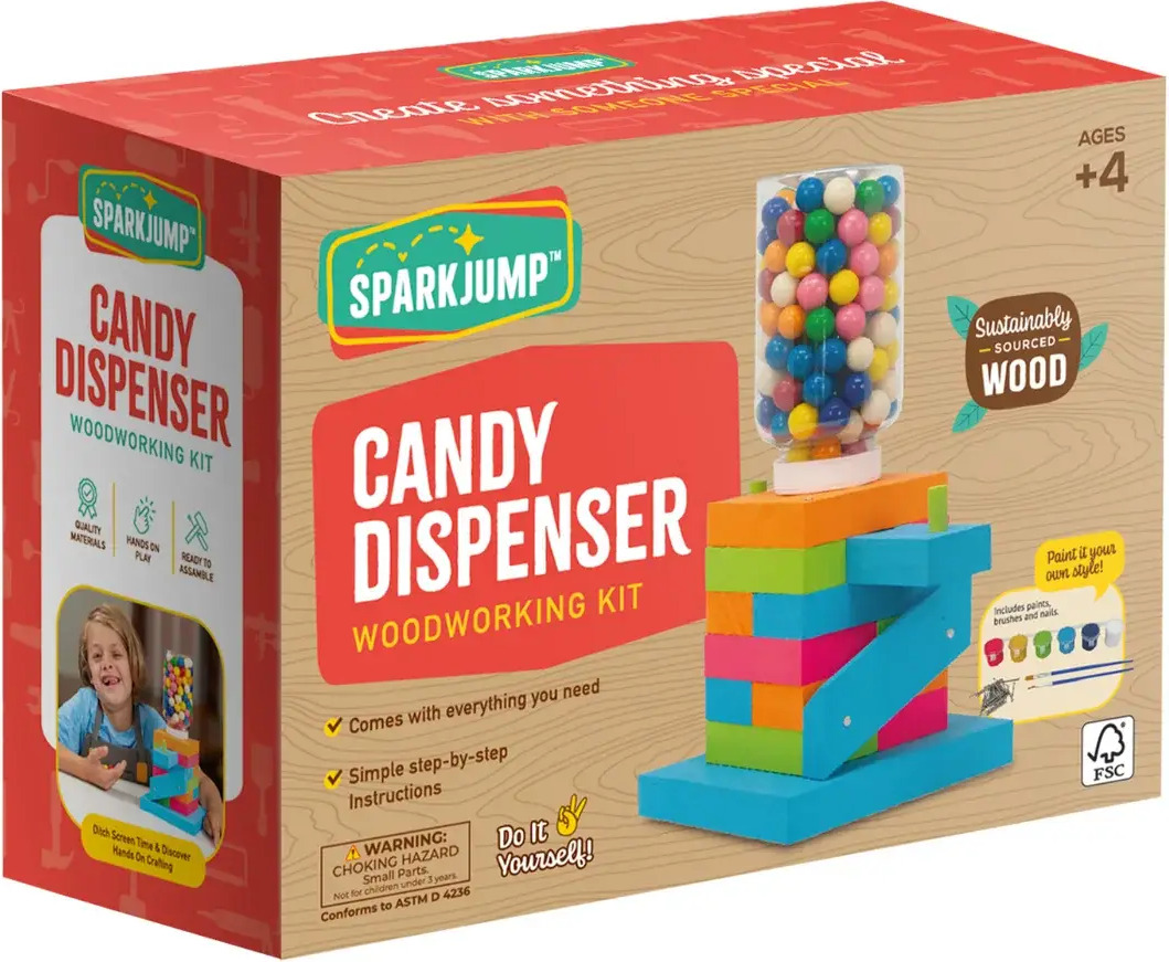 Our SparkJump kids' building kit comes with everything you need for a smooth crafting experience: a 16-ounce plastic mason jar, 30 nails, 16 wood pieces, a 60ml paint set, 2 brushes, 3 pieces of sandpaper and our full color step-by-step instructions. The perfect stress-free wood crafts for kids 4 years and up!