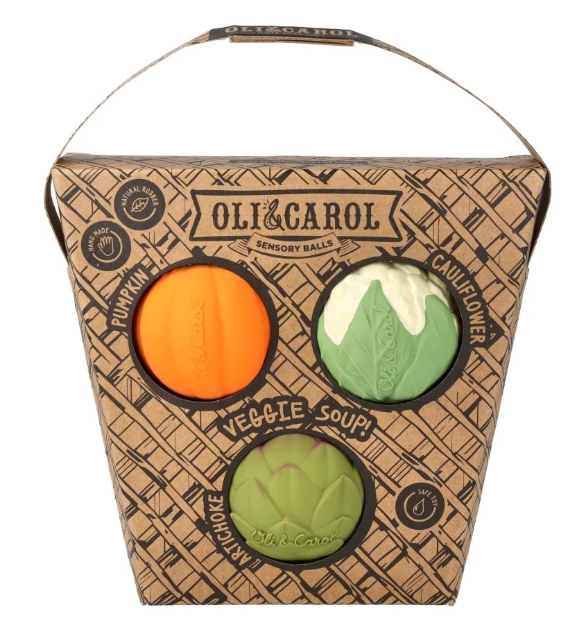 Introduce your little one to sensory exploration with the Veggie Soup set! This trio includes our best-selling artichoke and cauliflower, plus a new incorporation the pumpkin. Designed for tiny hands, these vegetable-shaped baby toys encourage tactile development, improve hand-eye coordination, and provide a safe teething experience. Made from 100% natural rubber, they are a must-have for eco-conscious parents.