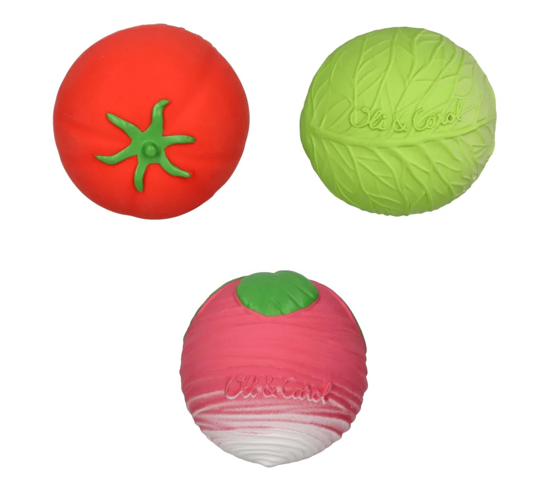 The Veggie Salad set brings a fun twist to sensory play with three mini balls: our best-selling radish, a vibrant tomato, and a crisp cabbage. These baby teething toys support early development, rolling movements, and chewing relief. Crafted from eco-friendly, non-toxic materials, they make the perfect natural baby gift.