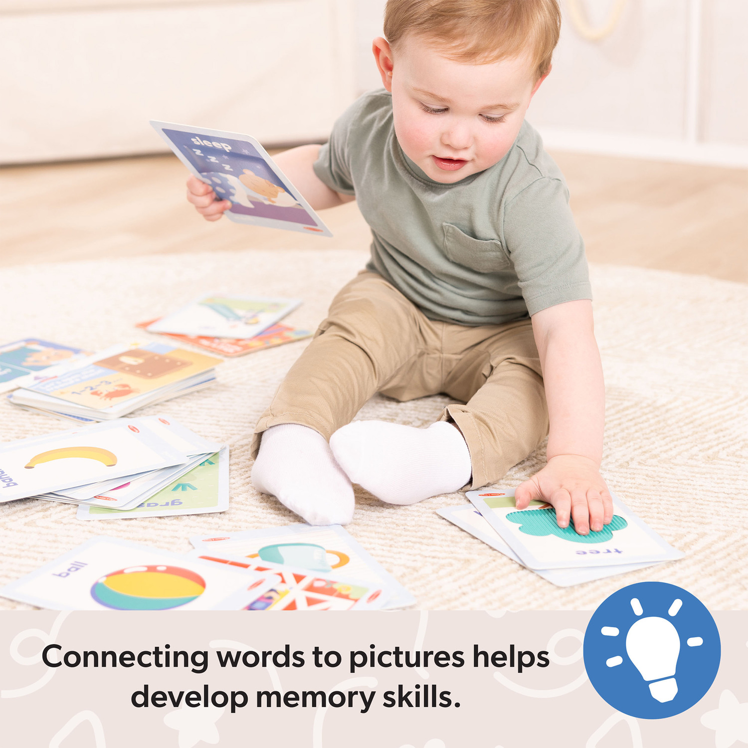 - COGNITION BUILDING: Hearing words and phrases, and associating them with touchable pictures is a great way to build vocabulary and memory retention skills; set includes a bonus Learning Card with play ideas and skill-building tips