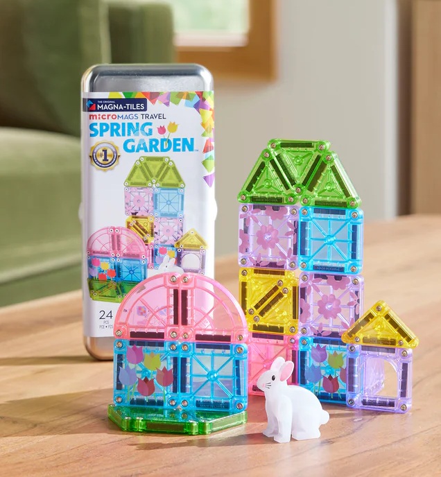 Bloom into creativity with the MAGNA-TILES microMAGS Spring Garden 24-Piece Travel Set! Featuring decorated floral tiles, pastel quarter-circle pieces, and an adorable bunny figure, this set inspires little builders to create bright, imaginative springtime worlds anywhere they go.