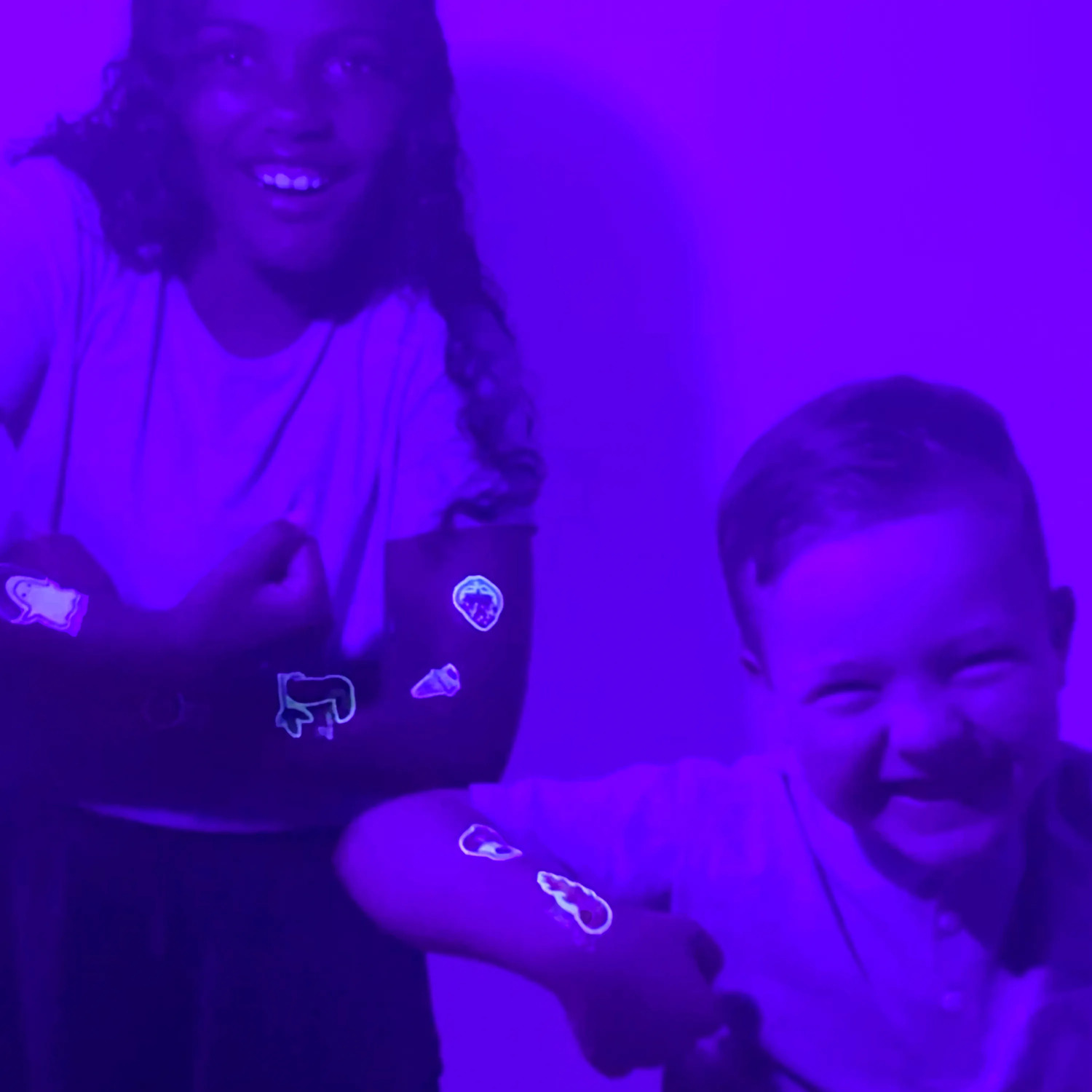 These tattoos are as simple to apply as they are silly. Just press on with water and let them dry. These tats are colorful by day and glowing by night. Bust them out for your next birthday party, playdate, or just for fun — after all, these tattoo sheets are an exciting way for kids to express themselves. Plus, they're simple to remove with baby oil or alcohol, so switching up designs is a piece of cake.