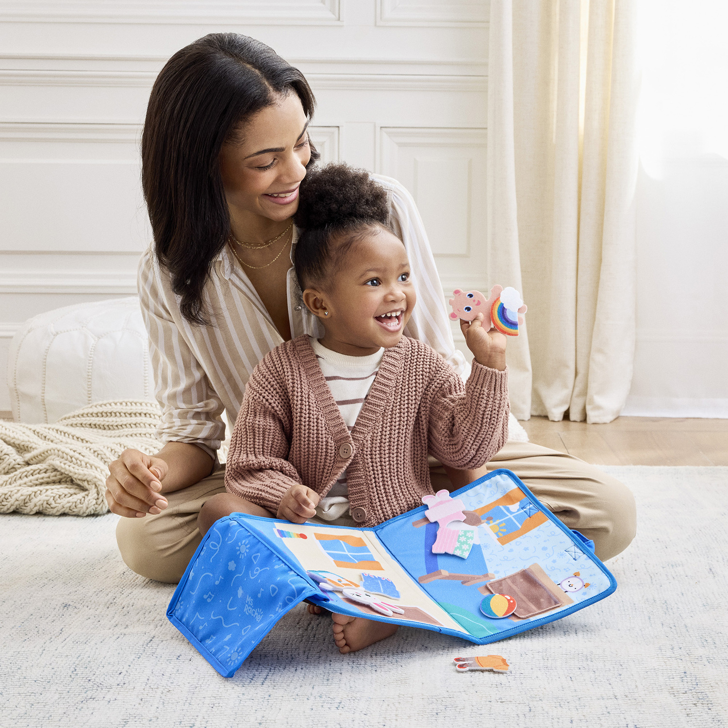 Features- OFFICIAL MS. RACHEL TOYS: Tell stories and practice routines with Ms. Rachel by layering 32 jumbo felt play pieces with soft hook fabric backing that sticks to other pieces and 4 scenes on a fold-out take-along felt board with built-in storage pocket